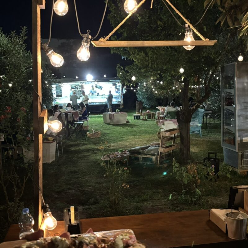 Tra lucine accese, chiacchiere all’aria aperta e piatti preparati con cura, potrete vivere una serata diversa, muovendovi liberamente tra i vari angoli food & drink del giardino: